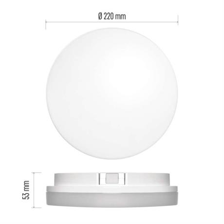 barva světla: teplá bílá|barva těla: bílá|dálkový ovladač: ne|do chodby a na schodiště: ano|do dílny a garáže: ano|do kanceláře: ne|do koupelny: ano|do kuchyně: ano|do obýváku, ložnice a dětského pokoje: ne|dosah senzoru: neuvádí se|flicker-free: ano|frekvence: 50/60 Hz|index podání barev (CRI): Ra > 80|kategorie: CLASSIC|krytí: IP54|materiál difuzoru: plast (PC)|materiál LGP: neuvádí se|materiál těla: plast (PC)|montážní otvor: neuvádí se|možnost stmívání: ne|náhrada za žárovku: 80 W|napětí: 220–240 V|na zahradu a balkon: ano|pohybový senzor: ne|příkon: 15 W|prodejní obal: 1 ks, krabice|proud: 200 mA|řada: TORI|rozměr: průměr 220 × 53 mm|světelná účinnost: 83 lm/W|světelný tok: 1 500 lm|teplota chromatičnosti: 3 000 K|tvar: kruh|typ difuzoru: mléčný|typ svítidla: klasické svítidlo|účiník: > 0,9|UGR<: neuvádí se|úhel vyzařování: 120°|umístění: stropní/nástěnné|výstupní proud ze zdroje: neuvádí se|záruční doba: 3 roky|zdroj světla: LED|životnost: 30 000 hodin|způsob montáže: přisazené