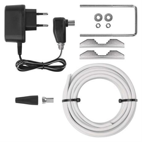 Anténa FISH–V700 je dodávaná společně s koaxiálním kabelem o délce 10 metrů a také se dvěma konektory typu F, které zajistí snadnou a rychlou instalaci.