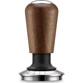 Tamper s pružinou, díky kterému regulujete sílu stlačení kávy do portafiltru s minimální námahou. Vyroben z nerezové oceli a ořechu, aby působil jako elegantní doplněk pro výrobky Sage.