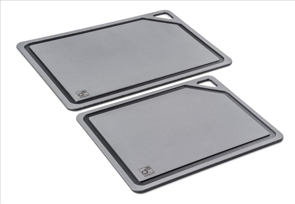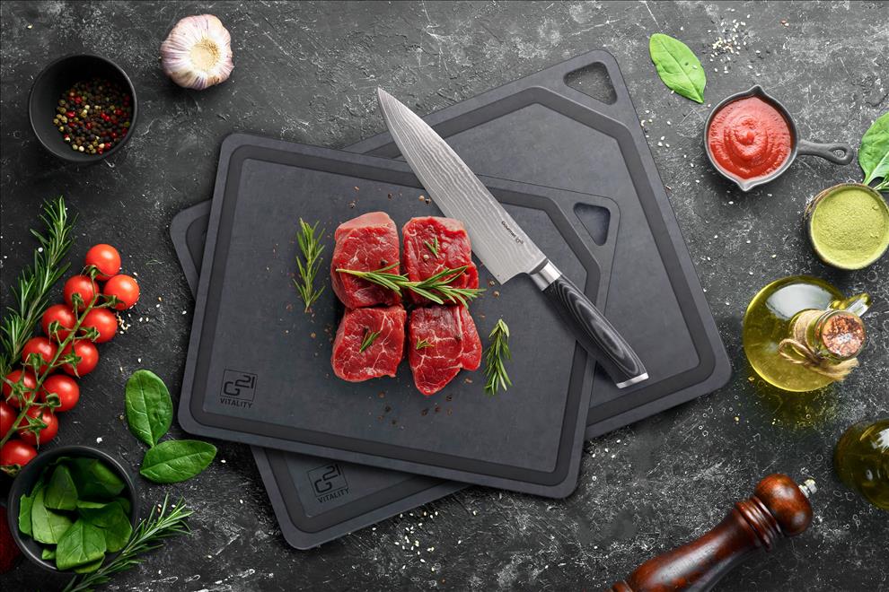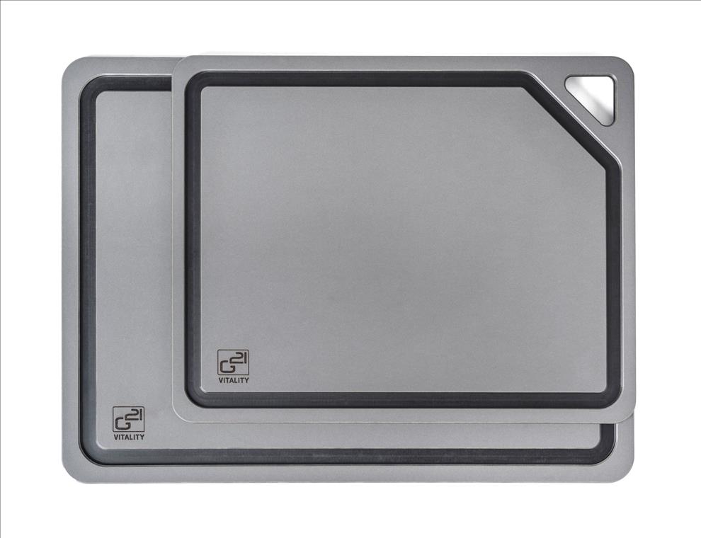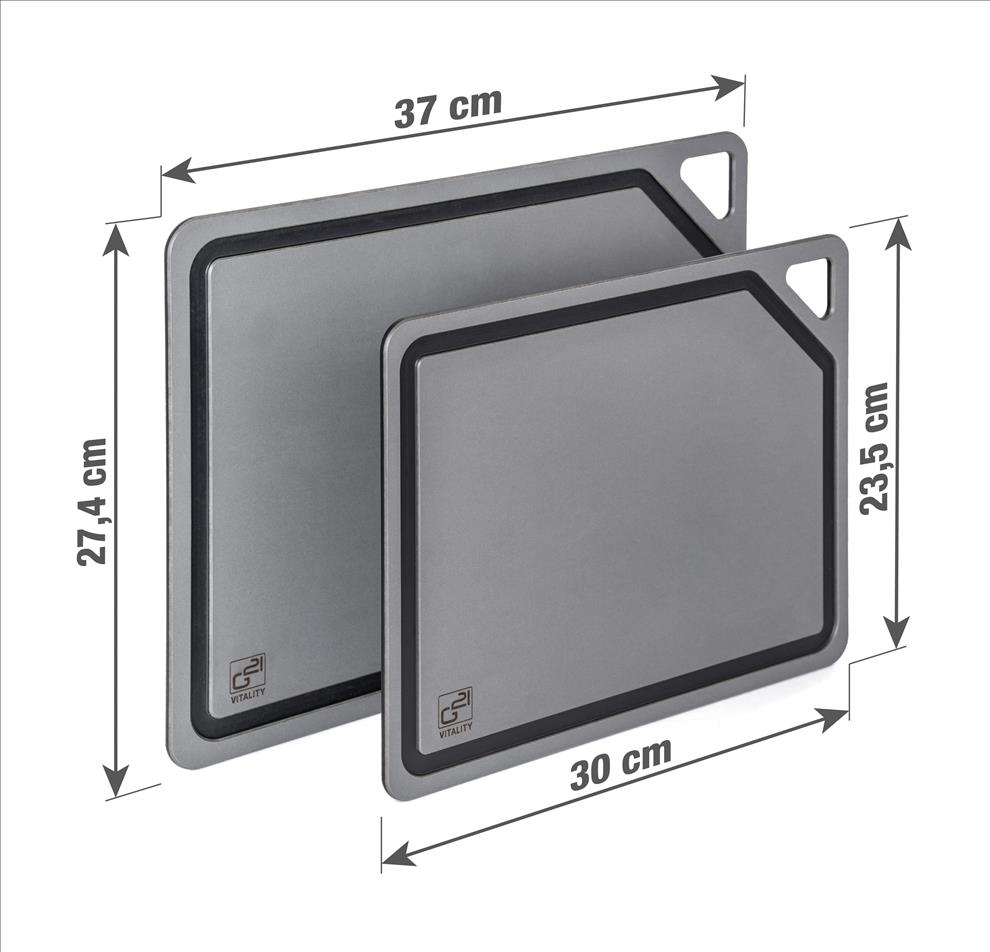 Krájecí prkénka G21 EcoCut z přírodní celulózy, sada 2 ks (30 × 23,5 cm a 37 × 27,4 cm), protiskluzová úprava. Hygienická, neporézní a odolná prkénka jsou šetrná k nožům, vhodná i do myčky.