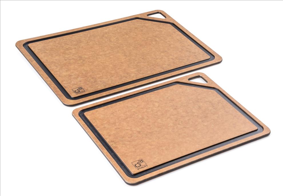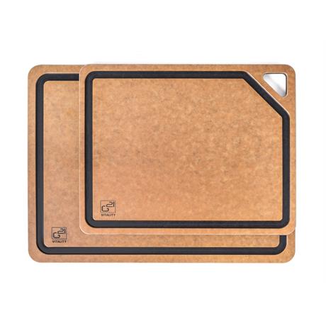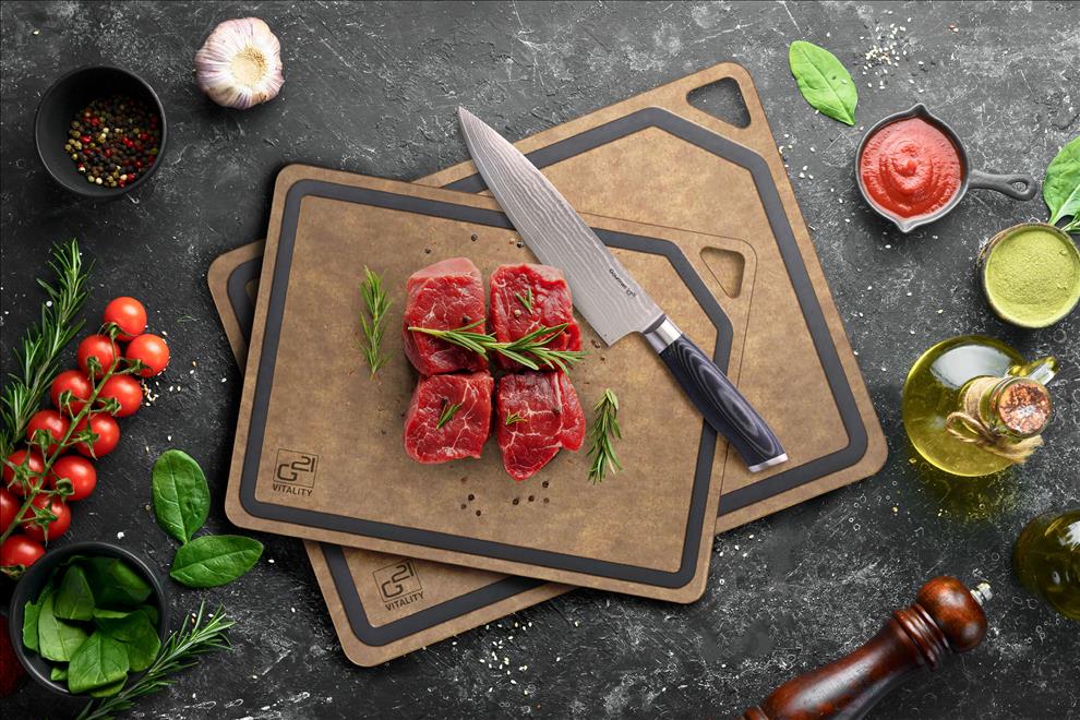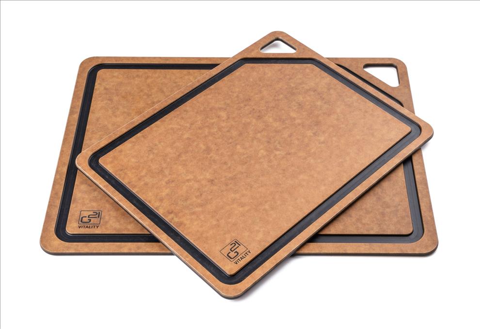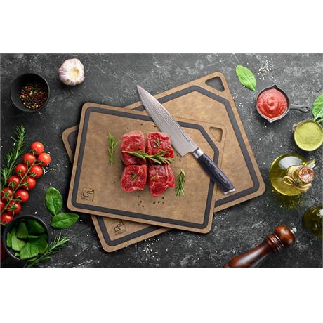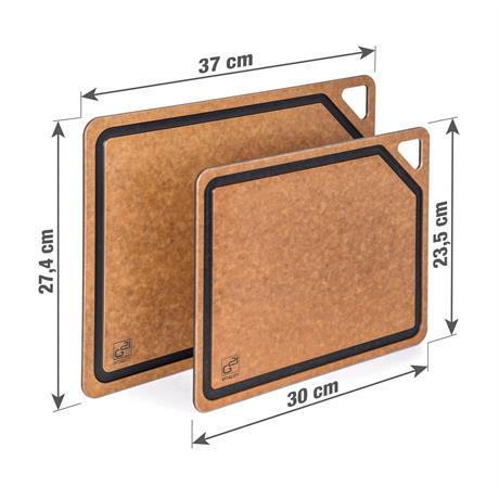 Krájecí prkénka G21 EcoCut z přírodní celulózy, sada 2 ks (30 × 23,5 cm a 37 × 27,4 cm), protiskluzová úprava. Hygienická, neporézní a odolná prkénka jsou šetrná k nožům, vhodná i do myčky.