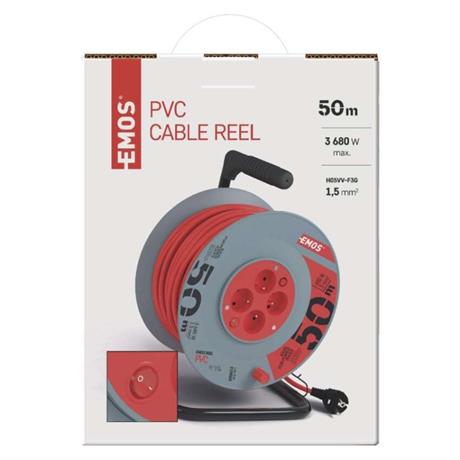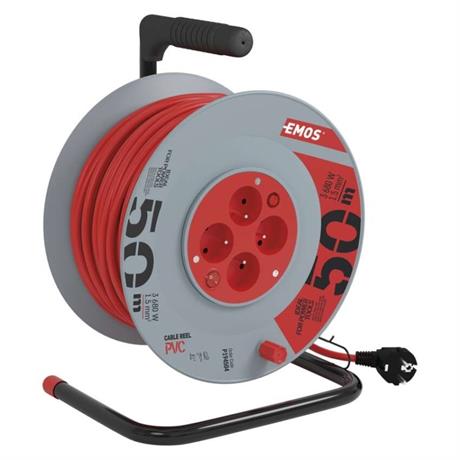 Prodlužovací kabel na bubnu 50 m / 4 zás. / s vypínačem / červený / PVC / 230V / 1,5 mm2