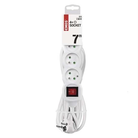 Prodlužovací kabel 7 m / 4 zásuvky / s vypínačem / bílý / PVC / 1 mm2