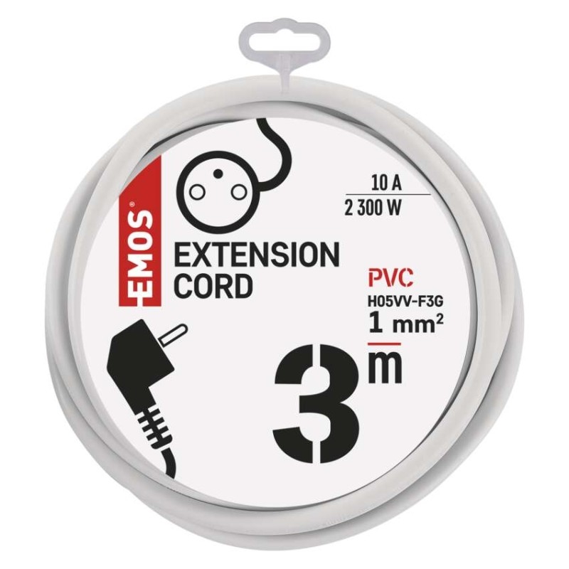 Prodlužovací kabel 3 m / 1 zásuvka / bílý / PVC / 1 mm2