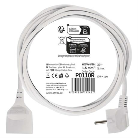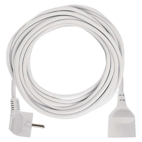 Bílý prodlužovací přívod s jednou zásuvkou - spojka, délkou 10 m a průřezem vodiče 1,5 mm2. Vhodný pro maximální zátěž 16 A max.