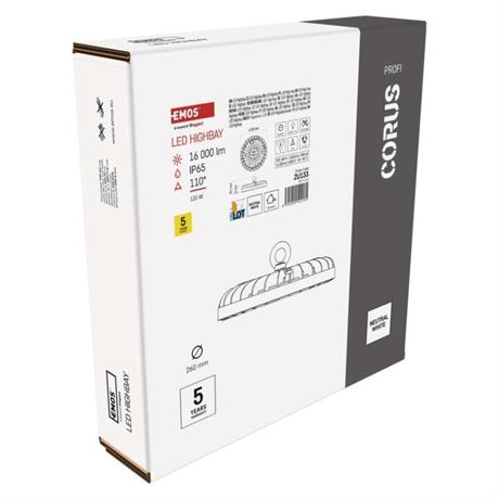 Zajistěte si optimální osvětlení pro vaše prostory s highbay svítidlem CORUS. Kvalitní LED čipy dodávají svítidlu vysokou světelnou účinnost 120 lm/W a dlouhou životnost. Vynikající výkon a kvalita světla vám pomohou ozářit velké průmyslové prostory jako jsou sklady, výrobní haly apod.