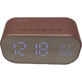 Radiobudík. AKAI ABTS-S2 GD. . Bluetooth 5.0. Výkon: 6 W RMS. FM rádio. Vstupy: AUX, micro SD karta. Teleskopická anténa. Počet a velikost reproduktorů: 2x 1,5". Doba nabíjení: 3 hodiny. Doba přehrávání: 5 hodin. Frekvenční rozsah: 100-18 000Hz. LED displej. Materiál ABS