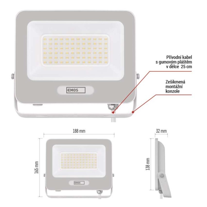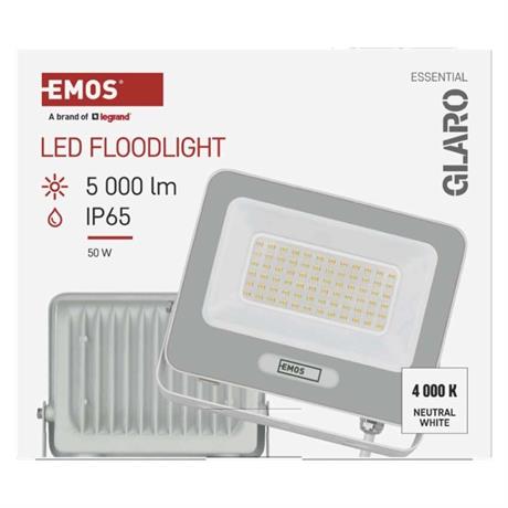 EMOS LED reflektor GLARO 50W, bílý, IP65, 5000 lm, neutrální bílá