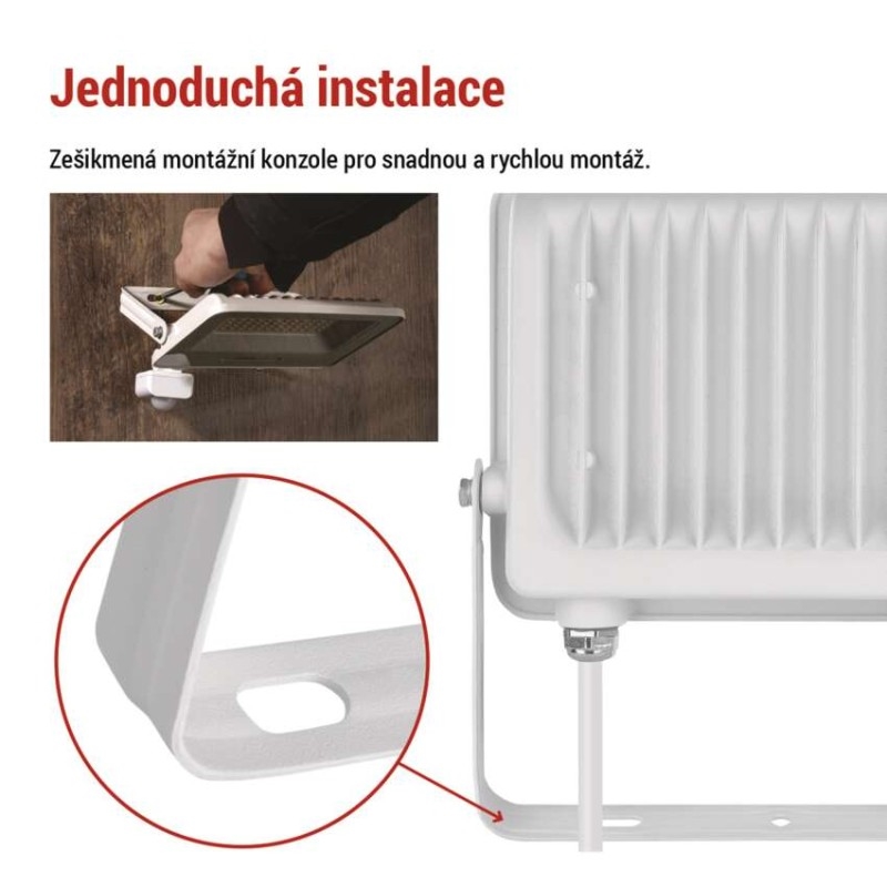 Reflektory GLARO s PIR senzorem jsou navrženy s praktickou zešikmenou montážní konzolí, která umožňuje rychlou a pohodlnou instalaci na stěnu, fasádu či jiný podklad. Díky možnosti nastavení úhlu osvětlení přesně podle potřeby můžete světlo směrovat tam, kde je nejvíce potřeba, aniž by bylo nutné složité vrtání či úpravy. Jednoduchá montáž šetří čas i námahu a dělá z GLARO ideální volbu pro domácí instalace.