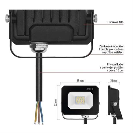 EMOS LED reflektor SIMPO 10 W, černý, neutrální bílá