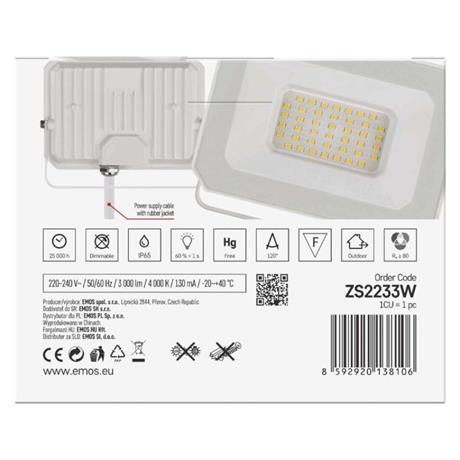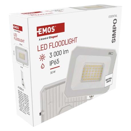 EMOS LED reflektor SIMPO 30W, bílý, IP65, 3000 lm, neutrální bílá