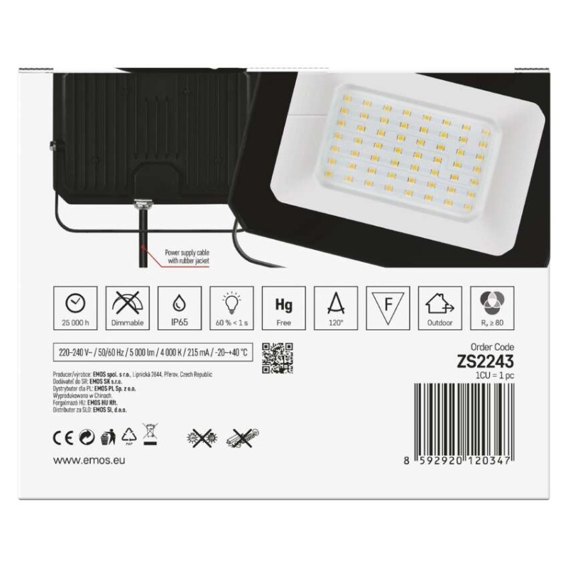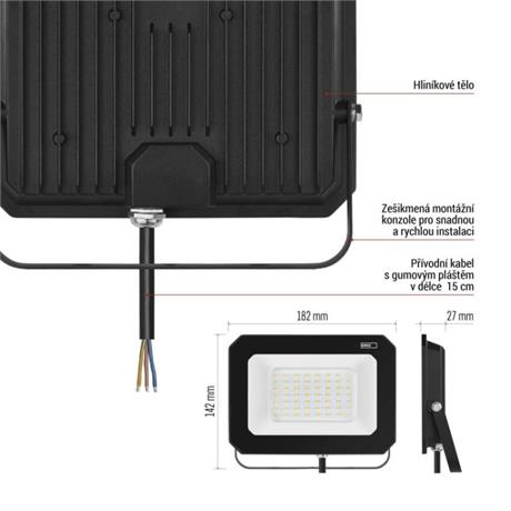 EMOS LED reflektor SIMPO 50 W, černý, neutrální bílá
