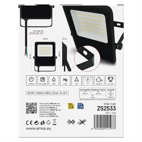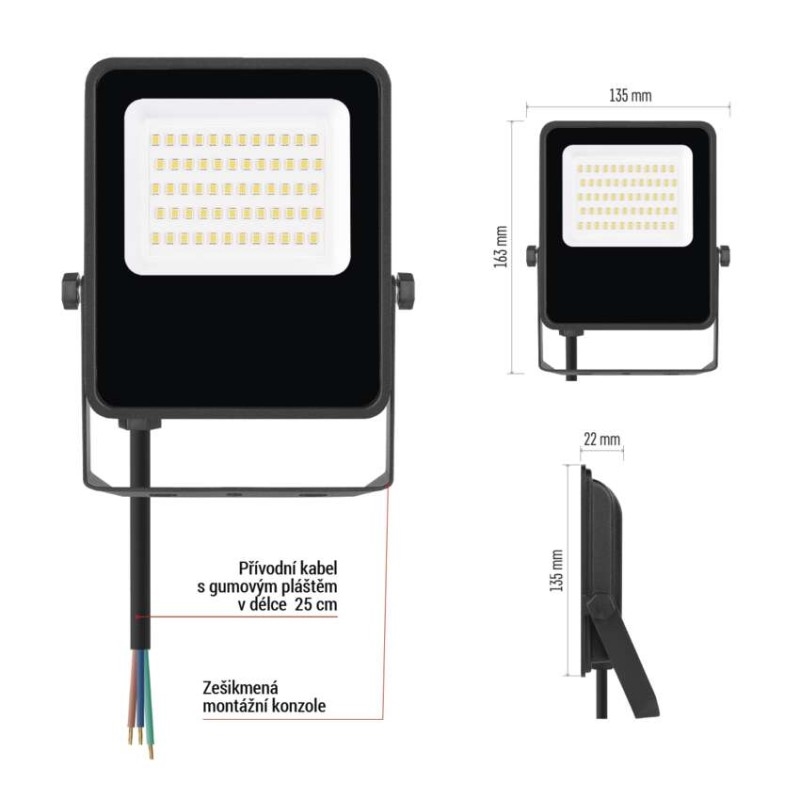 EMOS LED reflektor VISIO, 30 W, černý, neutrální bílá