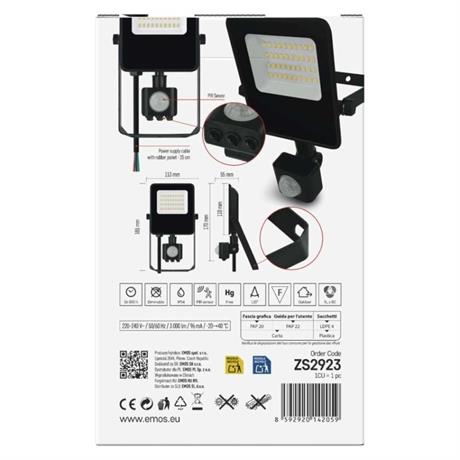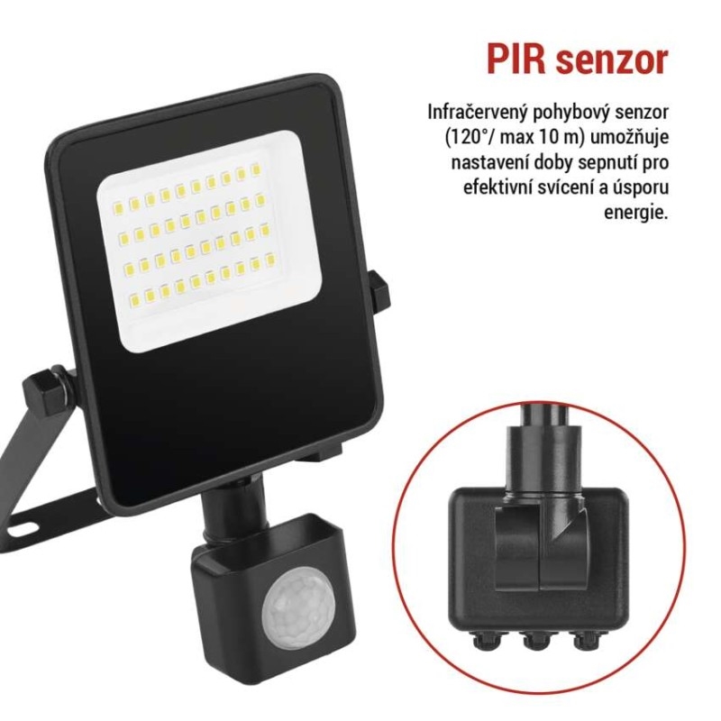 EMOS LED reflektor VISIO s pohybovým čidlem, 20 W, černý, neutrální bílá