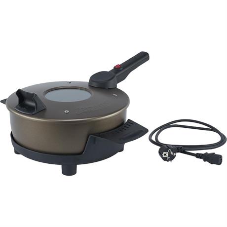 Horní část víka je vyrobena z nerezového plechu a má skleněné okénko. Dolní část víka z hliníku je potažena nepřilnavým povrchem Teflon Select. Odnímatelný přívodní kabel je opatřen evropskou zástrčkou. Vypínač na horní části držadla je pohodlný pro praváky i leváky a jeho kontrola je možná v jakékoliv poloze.
