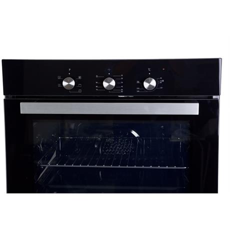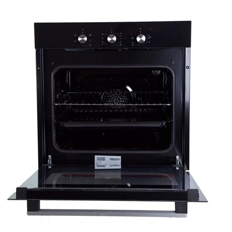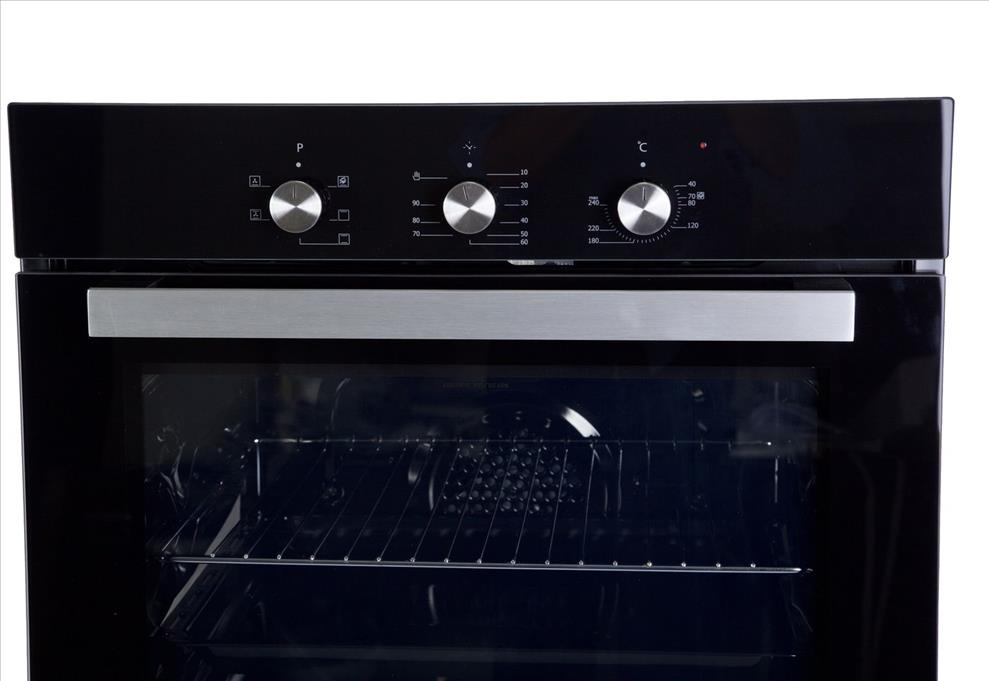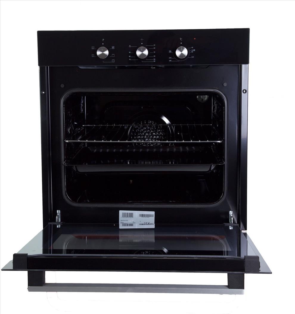 Vestavná trouba - rozměry 59,5 × 59,5 × 61 cm (V׊×H), objem 56 l, vybavena horním, spodním ohřevem, pravým horkým vzduchem, ventilátorem, s bočními prolisy, pevné knoflíky, tlumené zavírání, příkon 2300 W, časovač a vnitřní osvětlení, 1 plech a 1 rošt v balení, parní čištění trouby, energetická třída A, síťový kabel se zástrčkou součástí balení