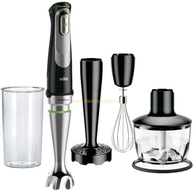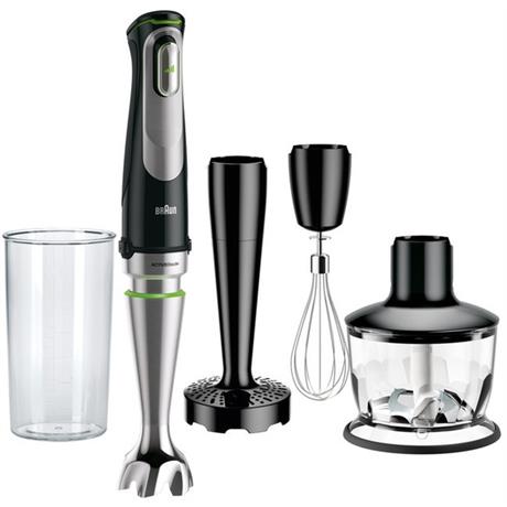 Ponorný mixér Braun MultiQuick MQ 9037X je nejen výborný pomocník pro všechny, kteří rádi vaří, ale také skvěle vypadá. Pohodlné používání mixéru je umocněno měkkou rukojetí, technologií SplashControl proti rozstřiku, větší aktivní sekací zónou, snadnou regulací rychlosti a systémem EasyClickPlus pro snadné a intuitivní nasazení příslušenství. K tomu patří vedle nerezové mixovací nohy sekací nástavec, nástavec na bramborovou kaši a zeleninová pyré, šlehací metla a plastová nádoba bez BPA.