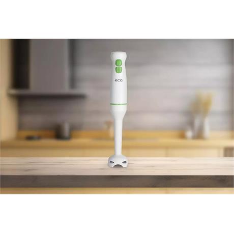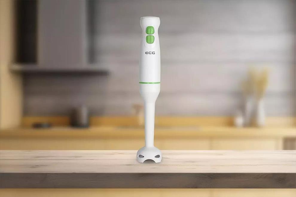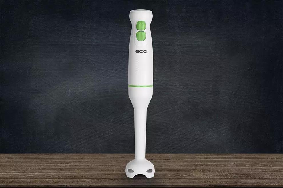 příkon 400 W, 2 rychlosti, turbo rychlost, funkce mixování, 2 nože, úzká mixovací noha součástí balení, bílá barva a zelené prvky