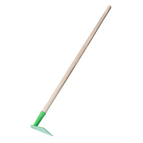 Velmi kvalitní a plně funkční dětská motyčka - plochá v pestré barvě s dřevěnou násadou.