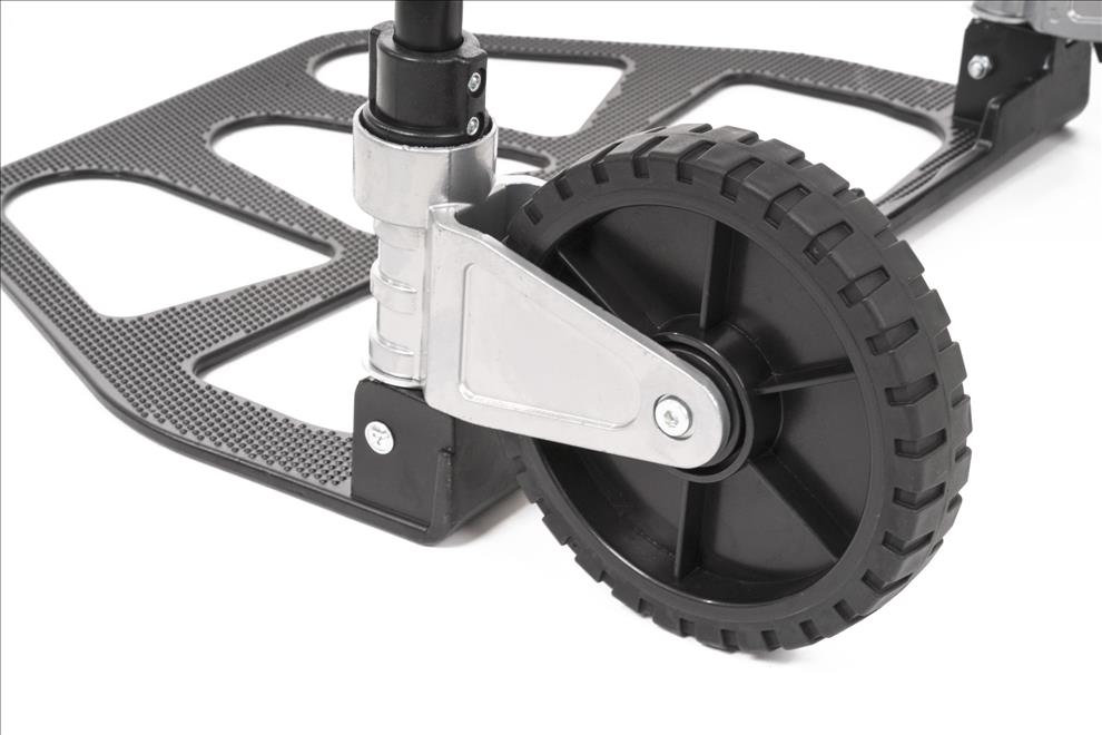 Konstrukce rudlu kombinuje hliník a ocel, díky čemuž odolá i náročnějším podmínkám a každodennímu používání. Zasunovací rukojeť zajistí snadné přenášení a skladování, velká 17 cm kolečka si poradí s různými typy povrchů. Ve složeném stavu má rudl kompaktní rozměry 48,5 × 91 × 6 cm a váží pouhých 6,6 kg, proto jej snadno uložíte nebo přepravíte například v kufru auta.