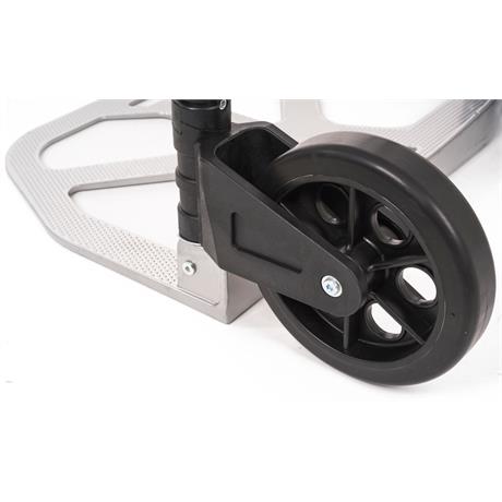 Díky celohliníkovému tělu je rudl lehký a přitom velmi odolný. Zvládne bez problémů přemístění těžkého nákladu do 200 kg, a to i na nerovném povrchu. Teleskopickou rukojeť snadno přizpůsobíte své výšce a tak získáte pohodlí při práci i přepravě. Kolečka o průměru 20 cm zajistí plynulý pohyb a dobré tlumení nárazů. Prostorná lopata 42,5 × 59 cm poskytuje dostatek místa i pro rozměrná břemena. Ve složeném stavu má rudl rozměry 59 × 107,5 × 9 cm a snadno se tak vejde do auta nebo skladu. Celková hmotnost rudlu činí 11 kg.