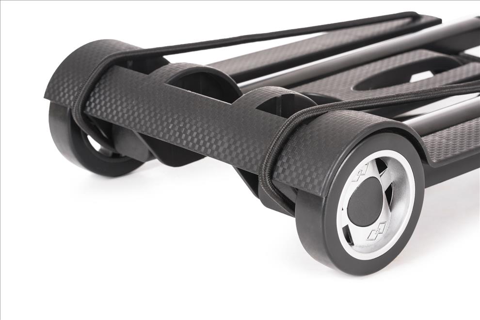 Rudl G21 váží jen 1,3 kg, ale díky chytrému designu uveze náklad do 45 kg. Malá kolečka 7,5 cm zajistí plynulý pohyb po rovném povrchu a zároveň snadné přenášení rudlu z místa na místo. Ve složeném stavu má rudl rozměry pouhých 23,5 × 44,5 × 8,5 cm, takže jej jednoduše uložíte do kufru auta, skříně nebo třeba batohu.