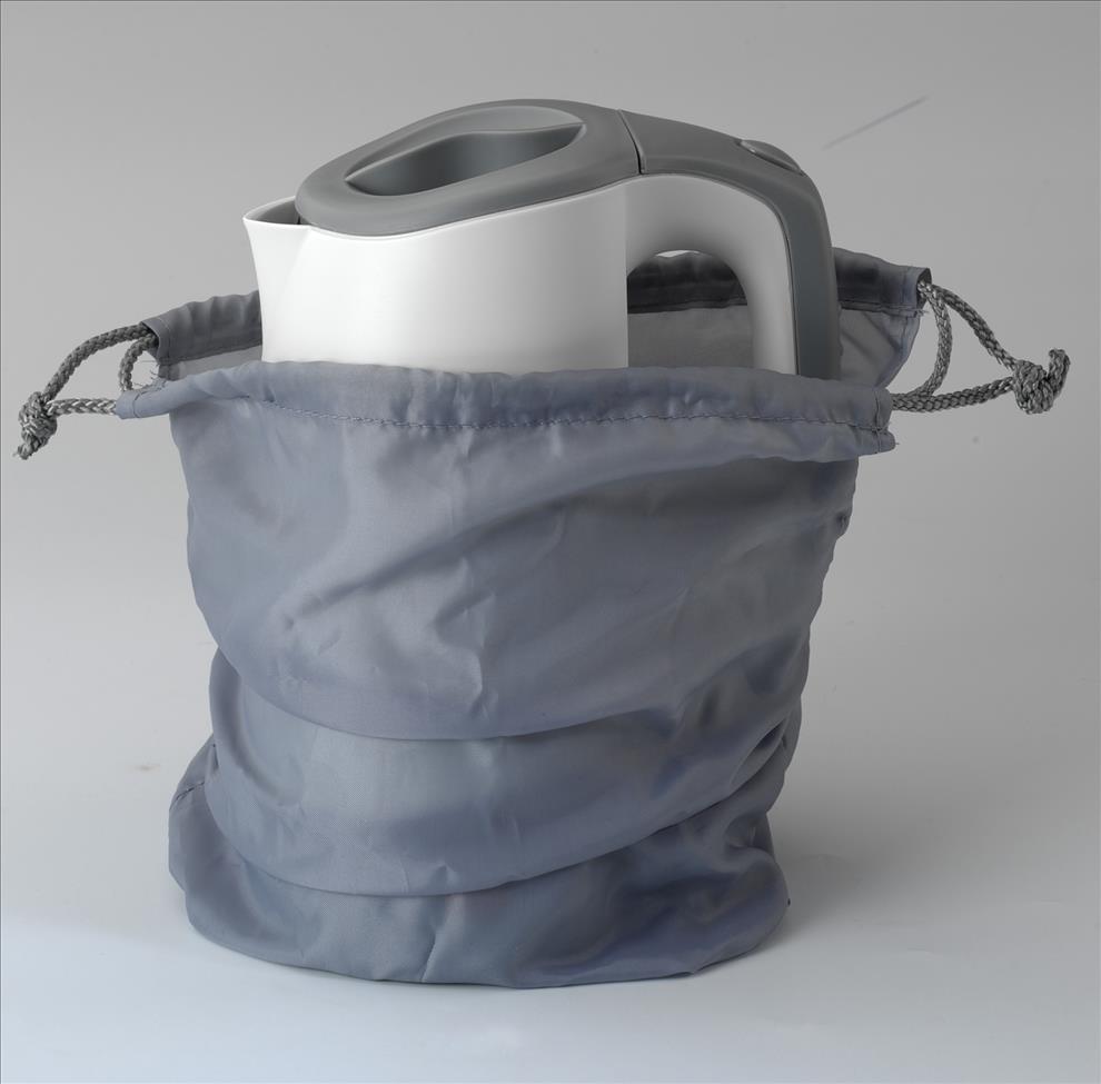 cestovní rychlovarná konvice • objem 0,4 l • automatické přizpůsobení napětí • materiál: plast • ochrana proti přehřátí • bezpečnostní uzavírání víka • automatické vypnutí po dosažení bodu varu • skrytá spirála • velikost: 15 × 12 × 20 cm • váha: 0,83 kg • barva: bílá • 2 praktické šálky • cestovní sáček