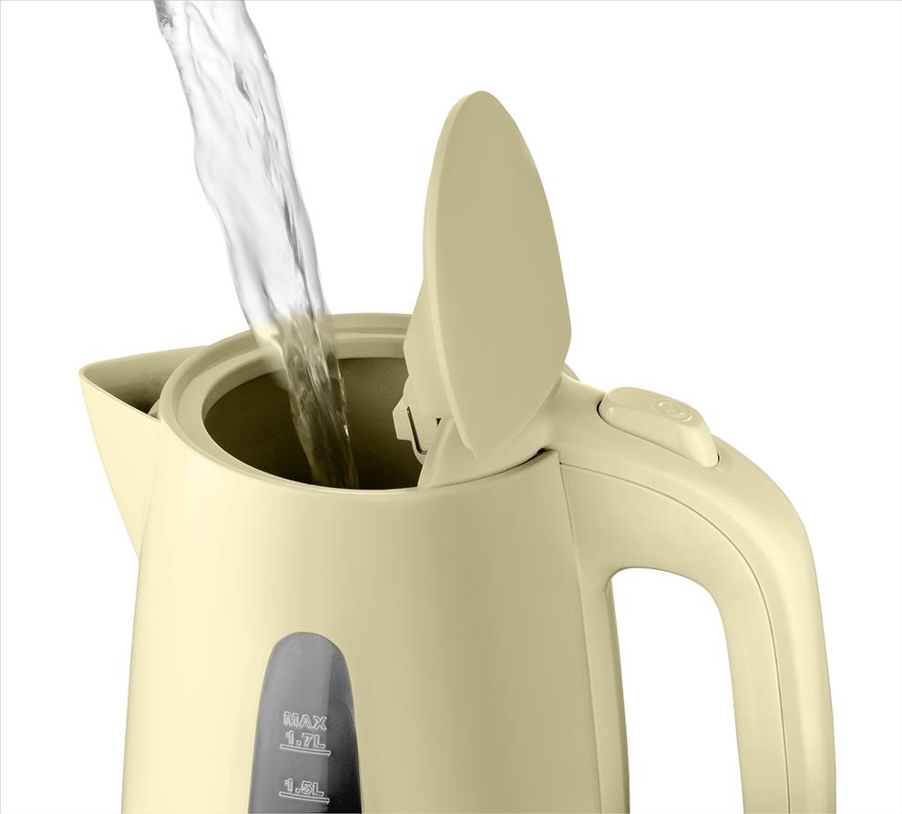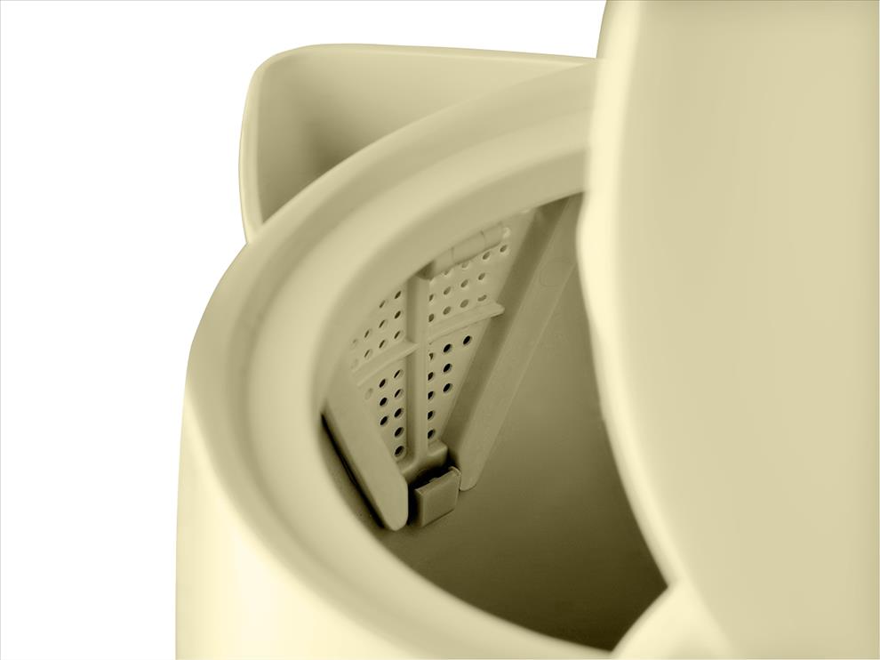 Konvice je opatřena tlačítkem pro snadné otevření víka a velkým plnicím otvorem pro pohodlné plnění vodou. Hladké dno se skrytým topným tělesem zamezuje usazování nečistot. Filtr proti vodním usazeninám je vyjímatelný, takže ho můžete kdykoliv dle potřeby vyčistit. Praktický je i plně otočný podstavec s prostorem pro uschování přebytečného kabelu, na který můžete konvici postavit z jakéhokoliv úhlu.