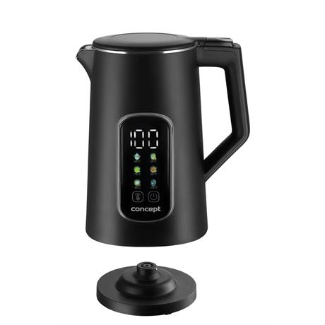Rychlovarná konvice s objemem 1,7 l Concept RK3385 disponuje regulací teploty, barevným LED displejem, chladným povrchem cool touch, značkovým konektorem Strix a trojnásobnou bezpečnostní pojistkou.