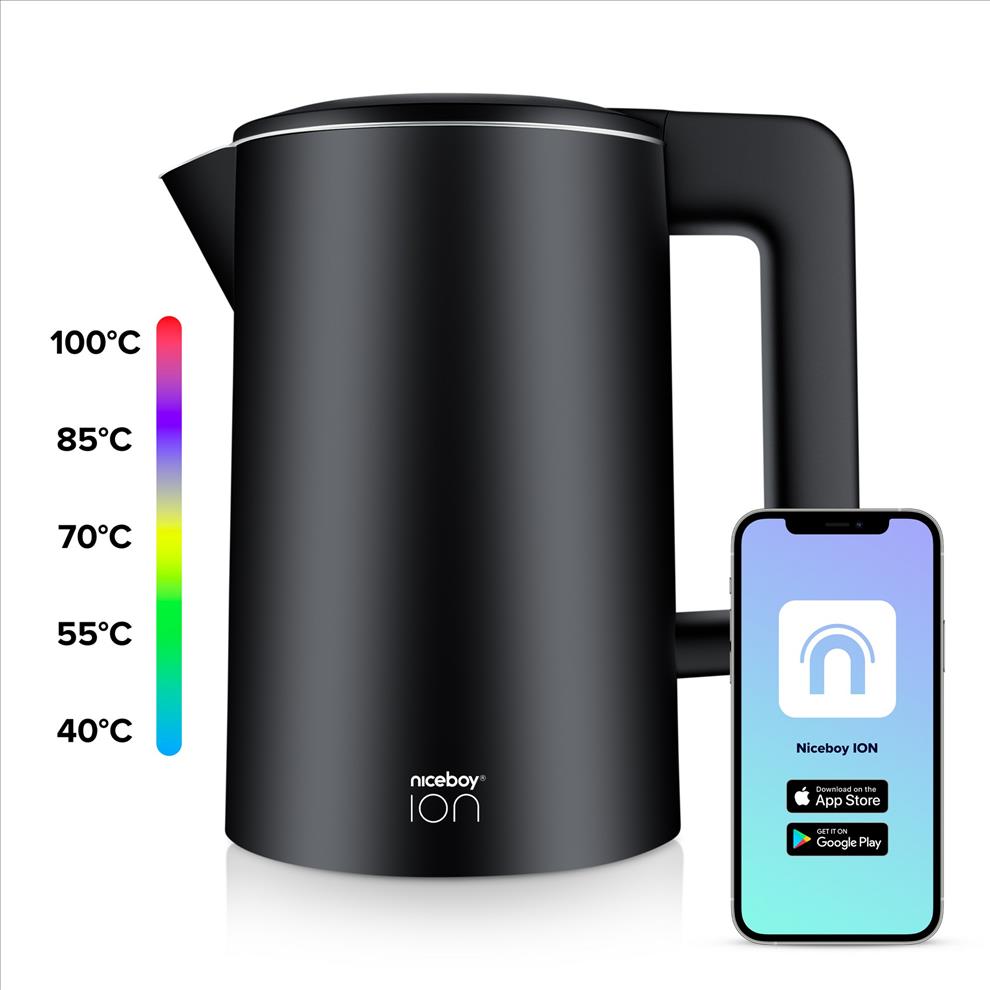 Niceboy ION SmartKettle je chytrá rychlovarná konvice s vlastní mobilní aplikací Niceboy ION. Díky unikátní možnosti nastavení pěti teplot, výkonu 2200 W a funkci udržení teploty po dobu 6 hodin vyhoví dokonale všem vašim potřebám.