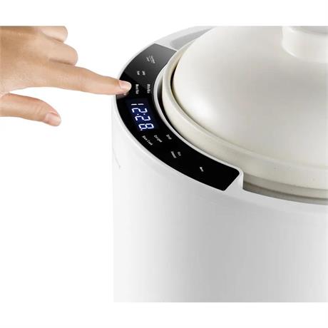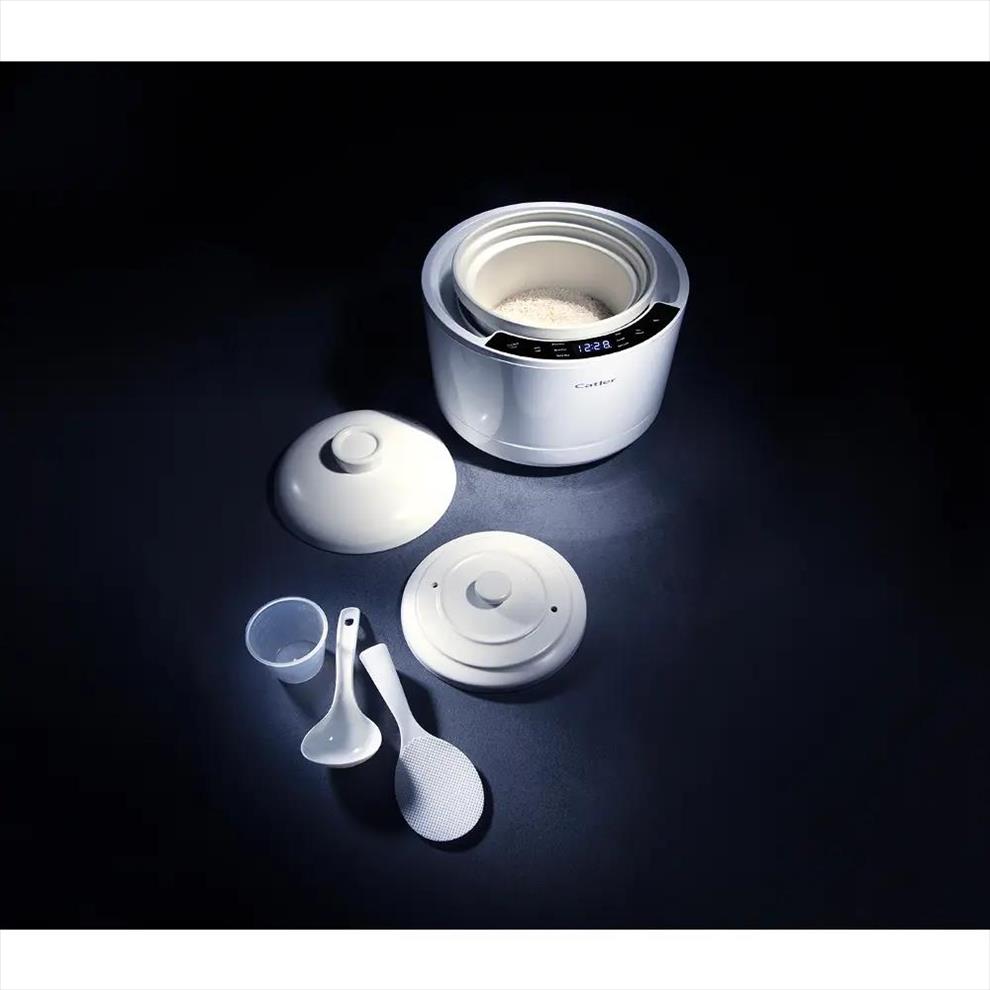Keramický rýžovar. CR 600. . Kapacita 2.5 l. Příkon 900 W. Předvolba 24 hodin. Dotykový digitální displej. Vhodný pro bílou rýži, hnědou rýži, polévky, pomalé vaření, congee. 6 automatických programů. Materiál – přírodní keramika s nepřilnavým povrchem, zdravotně nezávadná, žádné chemické nebo umělé přísady, žádné kovy. . Příslušenství:. Naběračka na rýži. Lžíce na rýži. Odměrka. 2 keramické poklice