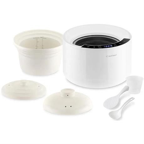 Rýžovar Catler CR 600 s příkonem 900 W se stane praktickým kuchyňským pomocníkem, který je vhodný pro bílou a hnědou rýži, polévky, pomalé vaření a congee. Elektrický hrnec nabízí kapacitu 2,5 l a 6 přednastavených programů. O intuitivní ovládání se postará dotykový digitální displej