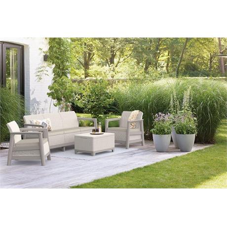 Set Scandi od značky Keter kombinuje přírodní vzhled s čistými liniemi typickými pro skandinávský styl. Béžovo šedé provedení působí elegantně a snadno se sladí s venkovním i interiérovým prostředím. Součástí sestavy je třísedadlová pohovka, 2 pohodlná křesla a praktický úložný stolek, který poslouží pro uložení podušek, dek nebo drobných doplňků.