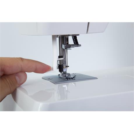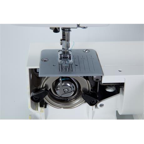 Velmi praktický, kompaktní šicí stroj s volným ramenem a vertikálním uložením chapače pro precizní šití všech stehů. Ve své cenové kategorii výborně vybavený pružnými i vyšívacími stehy, velmi vysoká užitná hodnota a praktičnost.