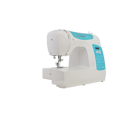 Šicí stroj Singer C5205 - TQ (Tyrkysová) je elektronický šicí stroj s displejem pro domácí šití. Stroj je vybaven kovovým kyvným chapačem, 80 druhy stehů, 6 typy automatické knoflíkové dírky i automatickým navlékačem jehly. Stehy, délka a šířka stehu se regulují jednoduše pomocí tlačítek. Praktické volné rameno umožňuje pohodlné šití i kruhových tvarů. Kvalitní LED osvětlení osvětluje pracovní plochu bez stínů. Pevný kovový rám zaručuje stabilitu při šití. Součástí je praktický přídavný stolek rozšiřující pracovní plochu.
