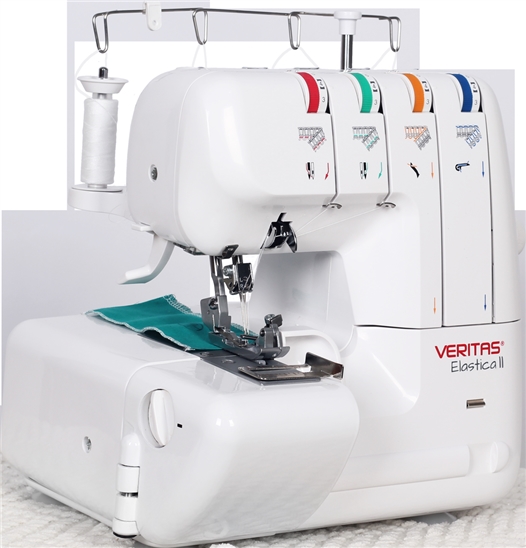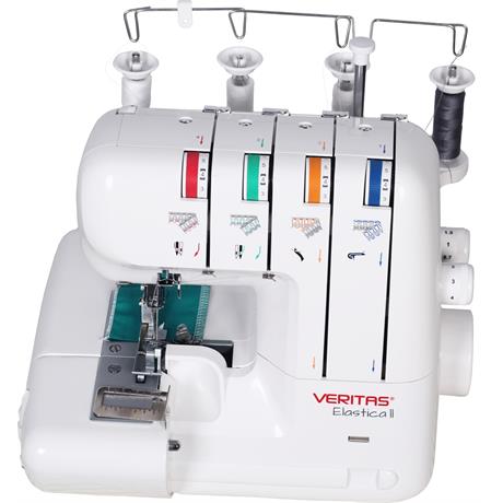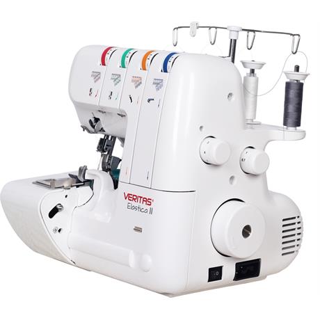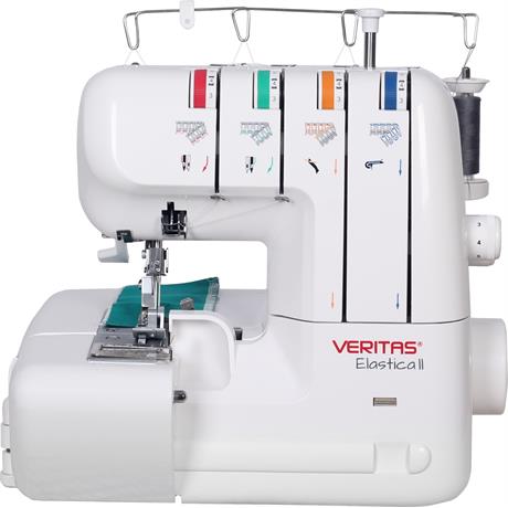 S overlockem VERITAS Elastica můžete šít se 2, 3 nebo 4 nitěmi a ušít velmi pružný a současně vysoce pevný overlockový šev. Vedení všech 4 nití je barevně odlišné pro snadnou orientaci při navlékání. Odříznuté části látky se shromažďují ve schránce a neztěžují vám práci. Součástí stroje je navíc pouzdro s početným příslušenstvím, včetně horního nože a pinzety, které jsou tak vždy po ruce a usnadní vám práci.