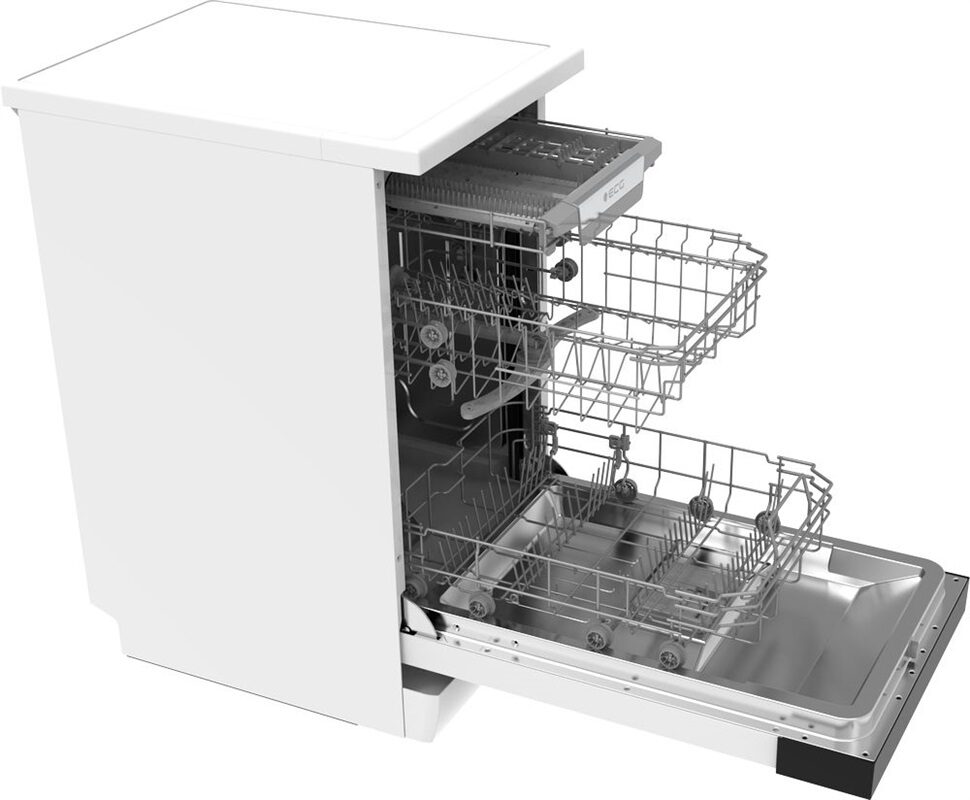 ECG EDF 100243 BlackLine je elegantní myčka nádobí, která se může díky svému bílému designu stát ozdobou jakékoliv kuchyně. V prvé řadě se však jedná o spotřebič, který vám v domácnosti výrazně usnadní každodenní práci. Umyjete v něm až 10 jídelních sad najednou, přičemž si můžete volit ze 7 různých programů. Díky funkci sušení zbytkovým teplem navíc máte jistotu, že vaše nádobí bude nejen dokonale čisté, ale i perfektně suché. V neposlední řadě vás pak myčka potěší velmi tichým chodem (jen 49 dB) a nízkou spotřebou vody – na jeden cyklus jí potřebuje jen 9 litrů. Myčku jsme také opatřili nerezovým vnitřním povrchem a systémem Aquastop pro bezpečný provoz.