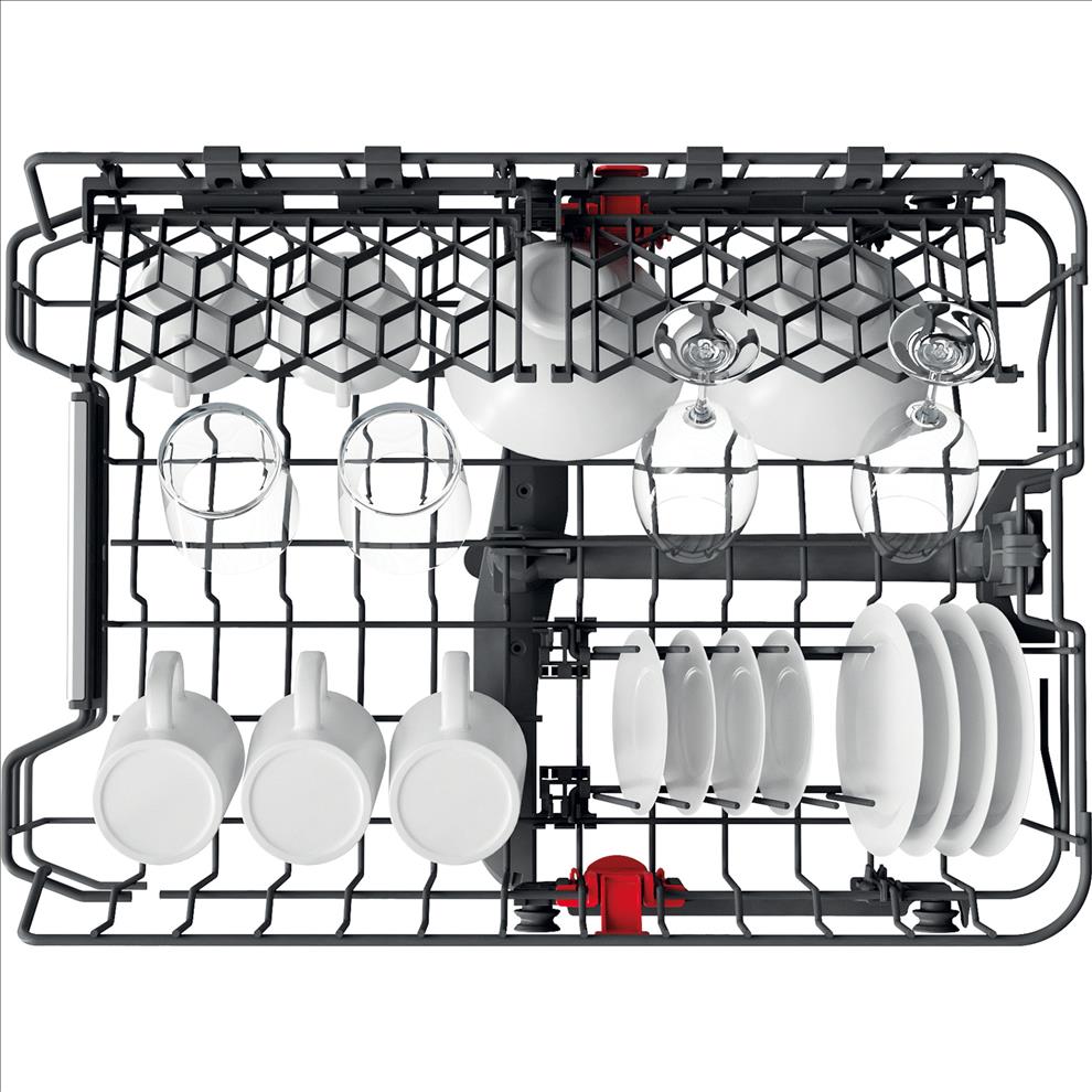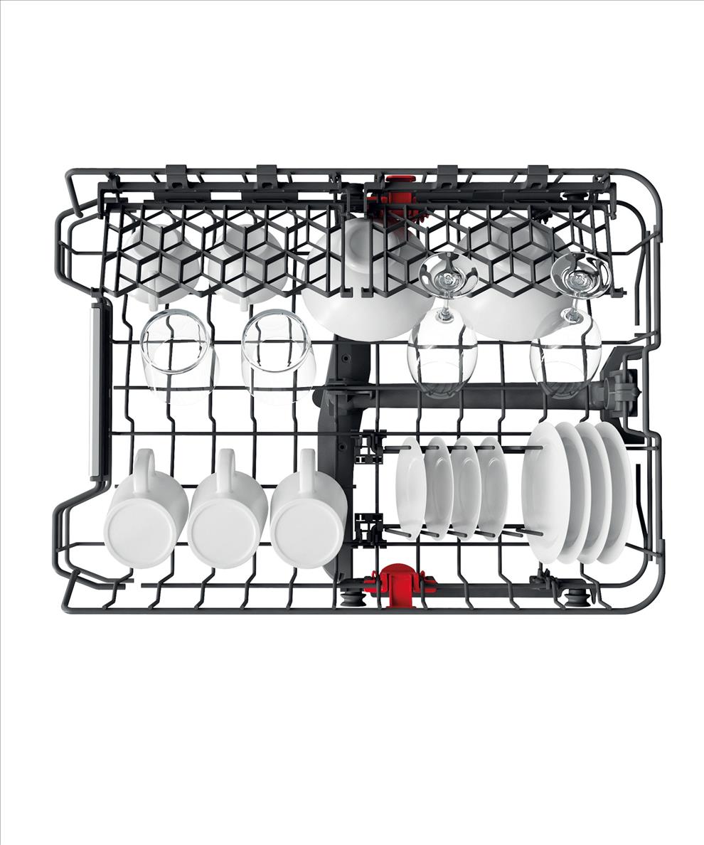 Jedinečná konstrukce Extra Space umožňuje vkládat hrnce a pánve do spodního koše ve svislé poloze, což nabízí dodatečný prostor pro dalších 10 kusů nádobí. Šetříte místo, šetříte čas.