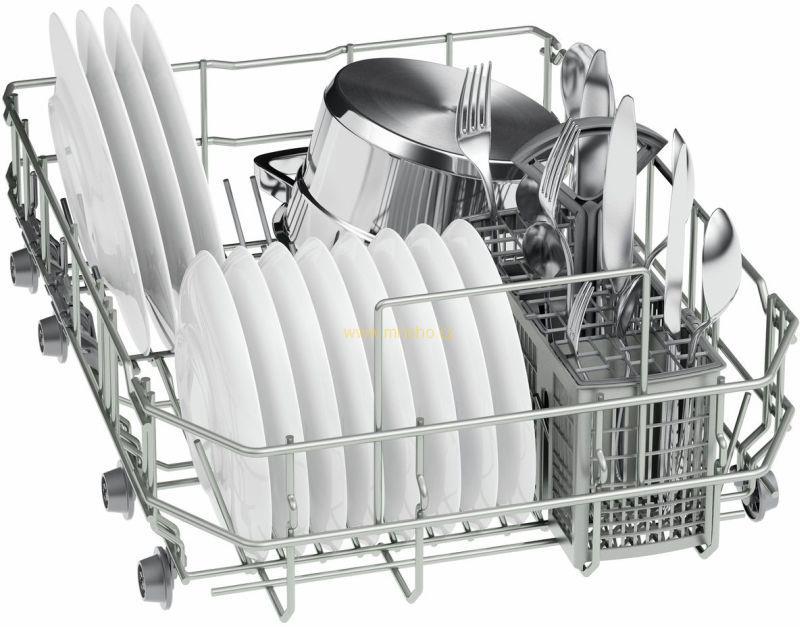 Myčka je připravena na všechno. Umožňuje velmi pohodlné vkládání talířů jakékoliv velikosti nebo neskladného velkého nádobí Podle toho, kde je třeba více místa, můžete změnit výšku horního koše. Podle nastavené výšky se pak vytvoří více místa v jednom z košů na nádobí. Myčka je vybavena systémem košů Vario. Horní koš je výškově nastavitelný, dolní koš má 2 sklopné přihrádky na talíře a variabilní koš na příbory.