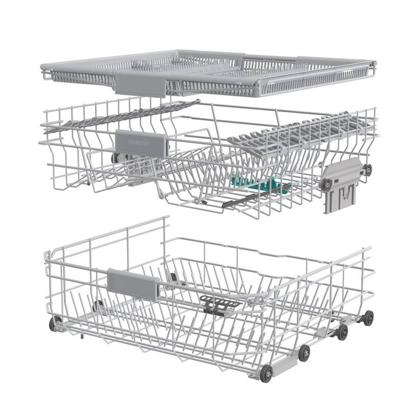 K dispozici budete mít celkem 2 koše. V horní části se nachází zásobník na příbory. Uprostřed se nachází koš se systémem MultiClack, který umožňuje zvedání a spouštění koše, čímž získáte variabilní prostor i pro větší kusy nádobí.
