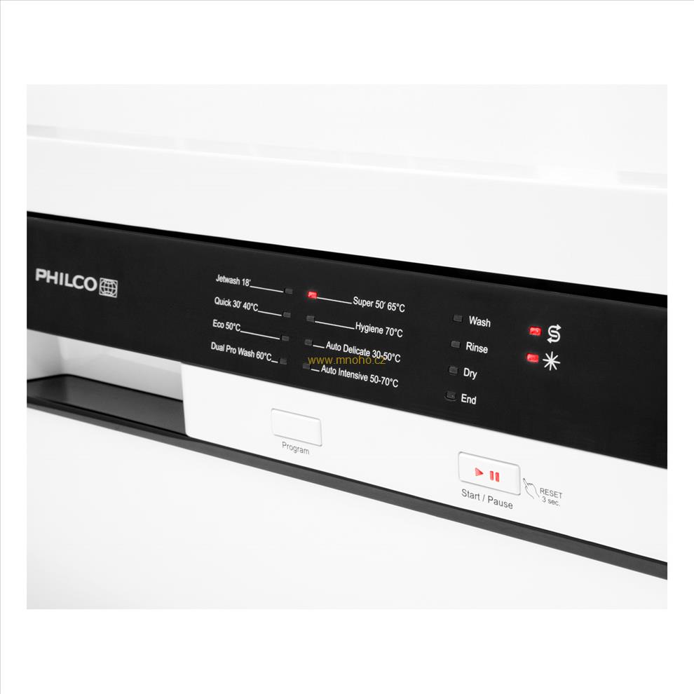 Ekonomické mytí – úsporný program s menší spotřebou, ale delší dobou mytí. Vhodný pro málo špinavé nádobí od kávy, mléka, čaje, studeného masa a zeleniny.