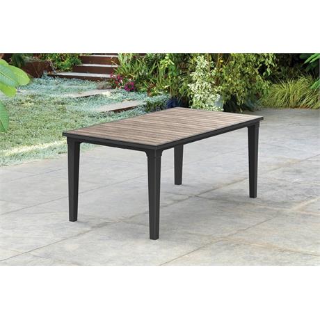 Zahradní stůl Keter Deco Futura 160 v provedení walnut a grafit nabízí dostatek prostoru pro pohodlné stolování s rodinou i přáteli. Díky rozměrům 165 × 95 × 75 cm a nosnosti 50 kg poskytuje ideální kombinaci stability, odolnosti a stylového designu.