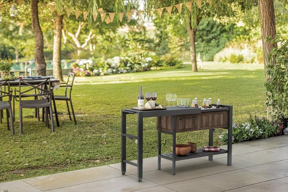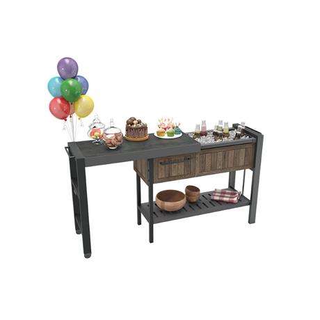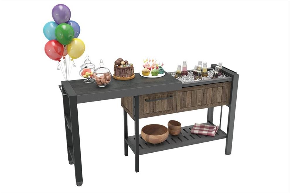 Jednoduchým rozložením získáte během okamžiku prostornou servírovací stanici o šířce až 174 cm, která nabídne dostatek místa pro nápoje, občerstvení i dekorace. Vnitřní prostor s nosností 40 kg využijete také jako chladicí box, stačí nasypat led a nápoje zůstanou příjemně vychlazené po celou dobu akce.