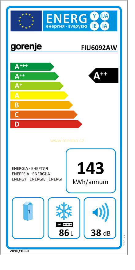 Podstavná mraznička FIU 6092 AW o objemu 96 l. Energetická třída: A++ Rozměry (šxvxh): 59,6 × 82 × 54,5 cm.