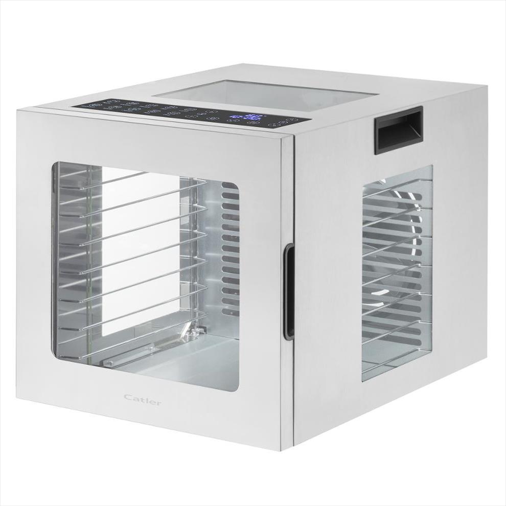 Sušička potravin FD 4011 od značky Catler představuje vrchol profesionální kvality v oblasti domácího zpracování surovin. Její elegantní nerezové tělo bez jediného plastového dílu zaručuje nejen prémiový vzhled, ale především maximální hygienickou čistotu i spolehlivý provoz na dlouhá léta. Precizní design je vidět v každém detailu – od snadno vysunovatelných sušicích plat až po panoramatické skleněné stěny, které vám umožní sledovat celý proces ze všech úhlů. Intuitivní dotykové ovládání spolu s praktickým vnitřním osvětlením vytvoří z každého použití příjemný zážitek.