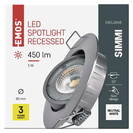 EMOS LED bodové svítidlo SIMMI stříbrné, kruh 5W neutr. bílá