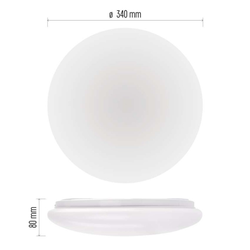 barva světla: neutrální bílá|barva těla: bílá|dálkový ovladač: ne|další funkce: –|do chodby a na schodiště: ano|do dílny a garáže: ano|do kanceláře: ne|do koupelny: ne|do kuchyně: ano|do obýváku, ložnice a dětského pokoje: ne|dosah senzoru: neuvádí se|flicker-free: ano|frekvence: 50/60 Hz|index podání barev (CRI): Ra > 80|jazyky aplikace: –|kategorie: ESSENTIAL|kompatibilita: –|krytí: IP44|materiál difuzoru: plast (PMMA)|materiál LGP: neuvádí se|materiál těla: ocelový plech|montážní otvor: ne|možnost stmívání: ne|náhrada za žárovku: 110 W|napětí: 220–240 V|na zahradu a balkon: ano|notifikace do mobilní aplikace: ne|obsah balení: –|ovládání hlasovými asistenty: ne|podporované OS: –|pohybový senzor: ne|přenosová frekvence: –|příkon: 18 W|prodejní obal: 1 ks, krabice|protokol: –|proud: 117 mA|řada: FIONI|rozměr: průměr 330 × 75 mm|světelná účinnost: 100 lm/W|světelný tok: 1 800 lm|teplota chromatičnosti: 4 000 K|tvar: kruh|typ difuzoru: mléčný|typ svítidla: klasické svítidlo|účiník: > 0
