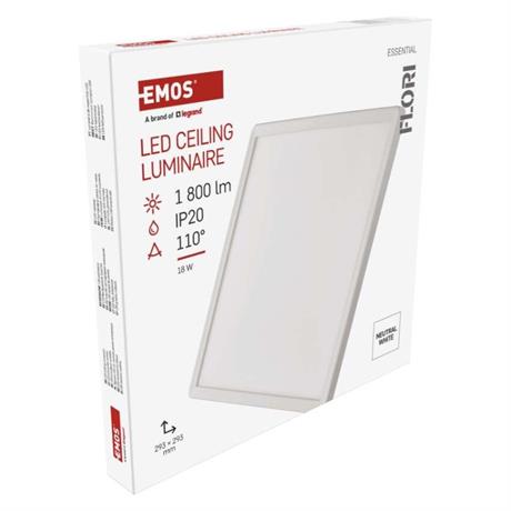 barva světla: neutrální bílá|barva těla: bílá|dálkový ovladač: ne|do chodby a na schodiště: ano|do dílny a garáže: ne|do kanceláře: ne|do koupelny: ne|do kuchyně: ano|do obýváku, ložnice a dětského pokoje: ano|dosah senzoru: neuvádí se|flicker-free: neuvádí se|frekvence: 50/60 Hz|index podání barev (CRI): Ra > 80|kategorie: ESSENTIAL|krytí: IP20|materiál difuzoru: plast|materiál LGP: neuvádí se|materiál těla: plast|montážní otvor: neuvádí se|možnost stmívání: ne|náhrada za žárovku: 115 W|napětí: 220–240 V~|na zahradu a balkon: ne|pohybový senzor: ne|příkon: 18 W|prodejní obal: 1 ks, krabice|proud: 134 mA|řada: FLORI|rozměr: 293 × 293 × 29 mm|světelná účinnost: 100 lm/W|světelný tok: 1 800 lm|teplota chromatičnosti: 4 000 K|tvar: čtverec|typ difuzoru: mléčný|typ svítidla: klasické svítidlo|účiník: > 0,5|UGR<: neuvádí se|úhel vyzařování: 110°|umístění: stropní/nástěnné|výstupní proud ze zdroje: neuvádí se|záruční doba: 2 roky|zdroj světla: LED|životnost: 15 000 hodin|způsob montáže: př
