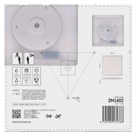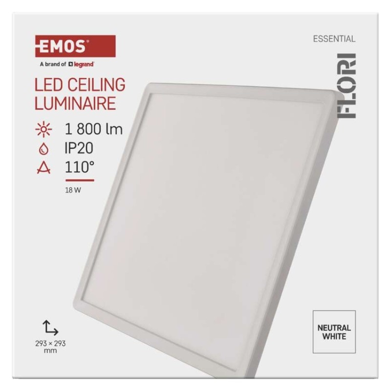 EMOS LED přisazené svítidlo FLORI čtvercové, bílé, 18W, neutrální bílá