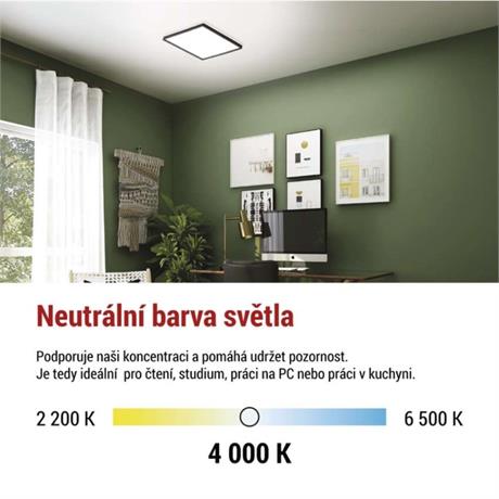 barva světla: neutrální bílá|barva těla: černá|dálkový ovladač: ne|do chodby a na schodiště: ano|do dílny a garáže: ne|do kanceláře: ne|do koupelny: ne|do kuchyně: ano|do obýváku, ložnice a dětského pokoje: ano|dosah senzoru: neuvádí se|flicker-free: neuvádí se|frekvence: 50/60 Hz|index podání barev (CRI): Ra > 80|kategorie: ESSENTIAL|krytí: IP20|materiál difuzoru: plast|materiál LGP: neuvádí se|materiál těla: plast|montážní otvor: neuvádí se|možnost stmívání: ne|náhrada za žárovku: 115 W|napětí: 220–240 V~|na zahradu a balkon: ne|pohybový senzor: ne|příkon: 18 W|prodejní obal: 1 ks, krabice|proud: 134 mA|řada: FLORI|rozměr: 293 × 293 × 29 mm|světelná účinnost: 100 lm/W|světelný tok: 1 800 lm|teplota chromatičnosti: 4 000 K|tvar: čtverec|typ difuzoru: mléčný|typ svítidla: klasické svítidlo|účiník: > 0,5|UGR<: neuvádí se|úhel vyzařování: 110°|umístění: stropní/nástěnné|výstupní proud ze zdroje: neuvádí se|záruční doba: 2 roky|zdroj světla: LED|životnost: 15 000 hodin|způsob montáže: p
